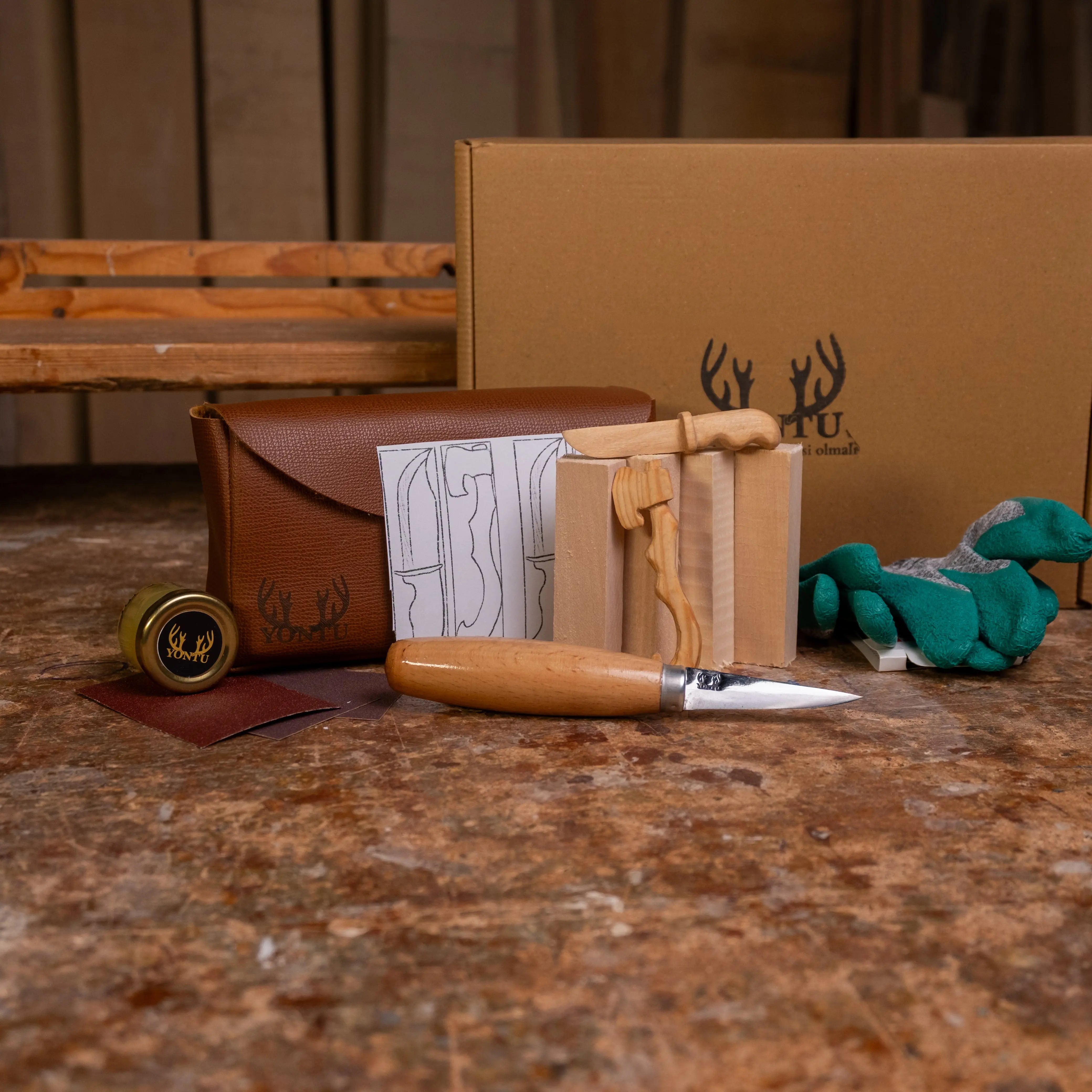 Deri YONTU Çantası — DIY04 Orta Çağ Ahşap Yontma Seti Hediyeli